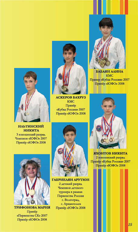 Уважаемые тренера и родители наших учеников. Общественная организация "Федерация тхэквондо (ГТФ) Ставропольского края" собирает материал для публикации буклета о нашей работе за последние несколько лет. Приглашаем к сотрудничеству родителей, если Вы желаете, чтобы фотография и информация о Вашем ребенке была представлена в журнале, Вам необходимо: в электронном виде выслать фотографию, информацию о разряде и значимых победах Вашего ребенка. Стоимость участия одного ребенка 3000 руб. После публикации буклета Вы получите на руки десять экземпляров буклета. Если Вы хотите предоставить информацию о двоих детях, Вам необходимо оплатить 5000 за участие. Информацию необходимо дать до 28 марта 2015 года. Материалы собирают в электронном виде по адресу e-mail: Tatyana.pyanuch@rambler.ru Все интересующие Вас вопросы можно уточнить по телефону 8-928-342-60-74 Асобина Татьяна Викторовна Примерно в таком виде будут выглядеть страницы будущего журнала: |